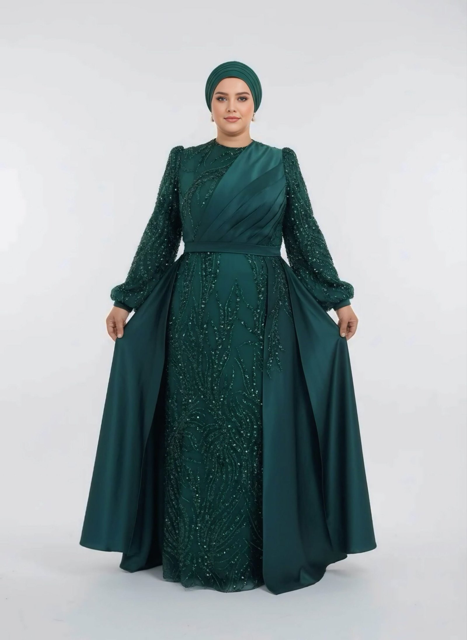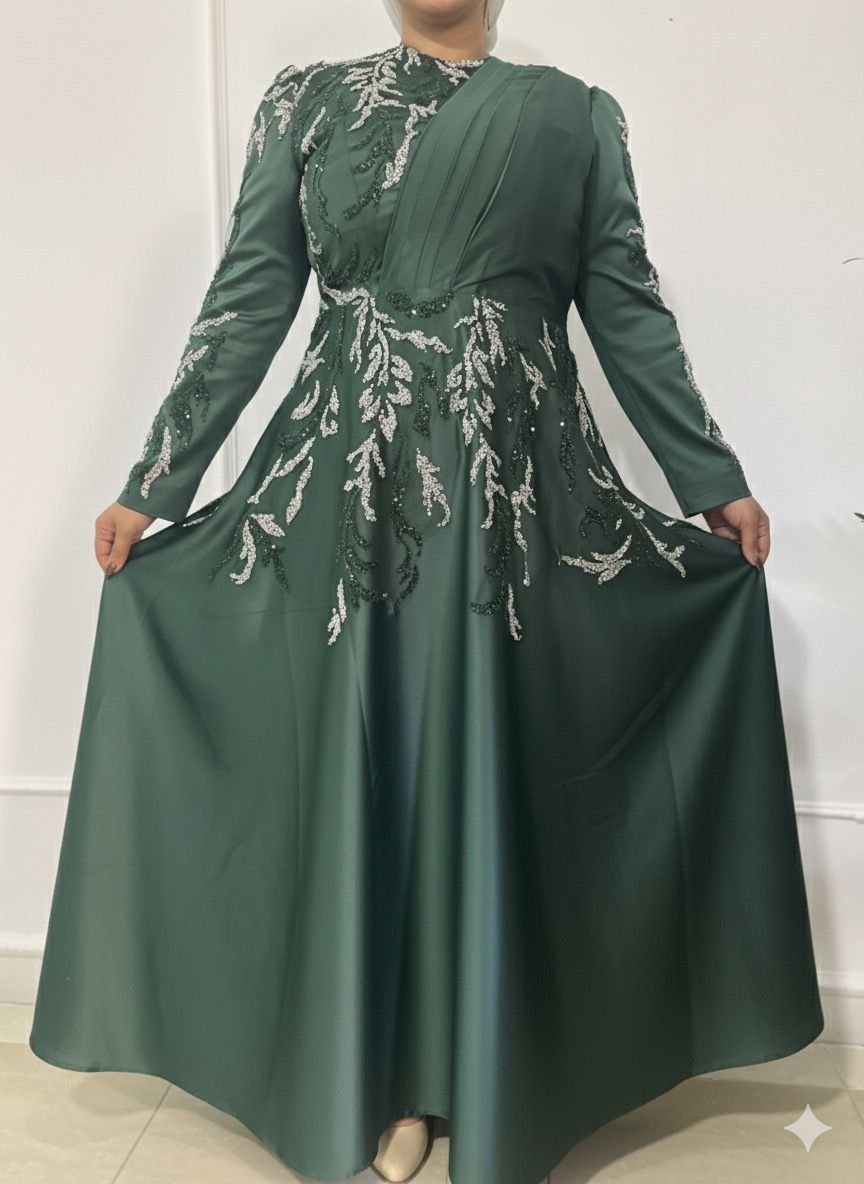 Emerald Green Beaded Modest Evening Dress