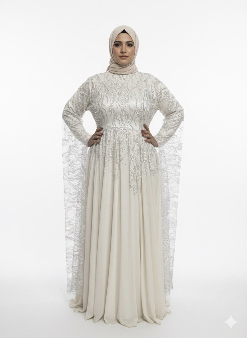 Luxury Ivory Beaded Modest Kaftan Gown – Wedding Ready