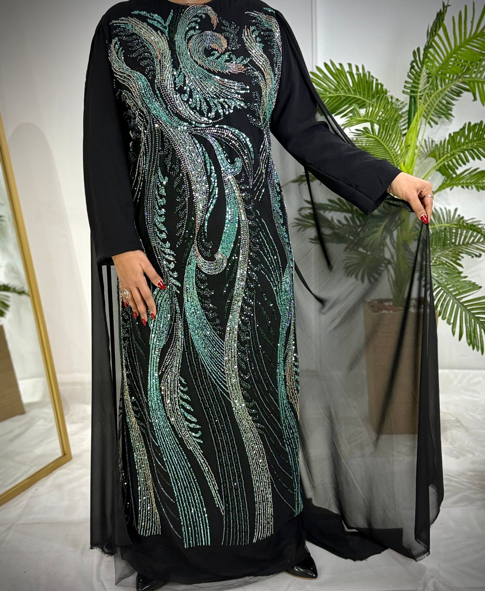 Introducing “The Serenity Cascade,” an exquisite full-length Abaya that redefine...ClearXSSMLXLXXL3XL -
