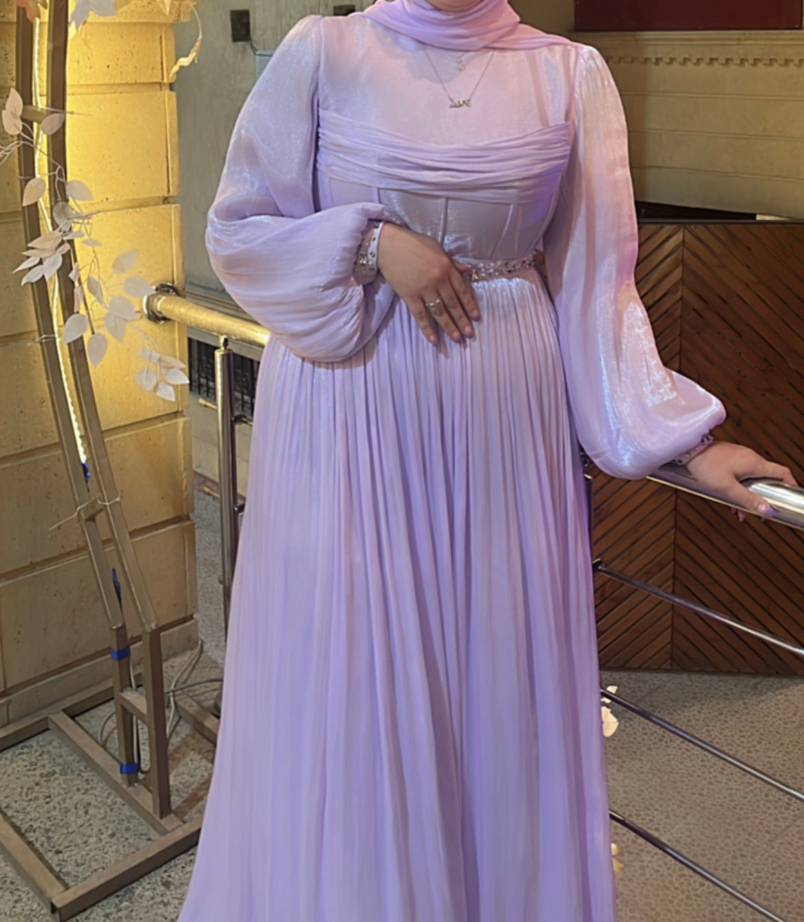 فستان لافندر فاتح شيفون كرينكل تحفه فى اللبس